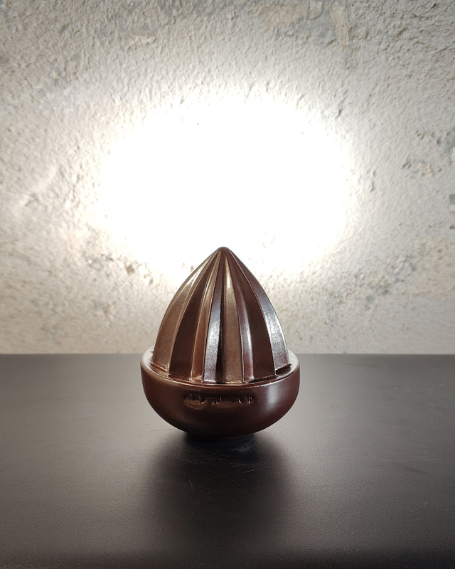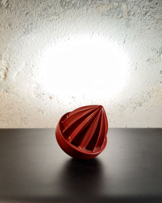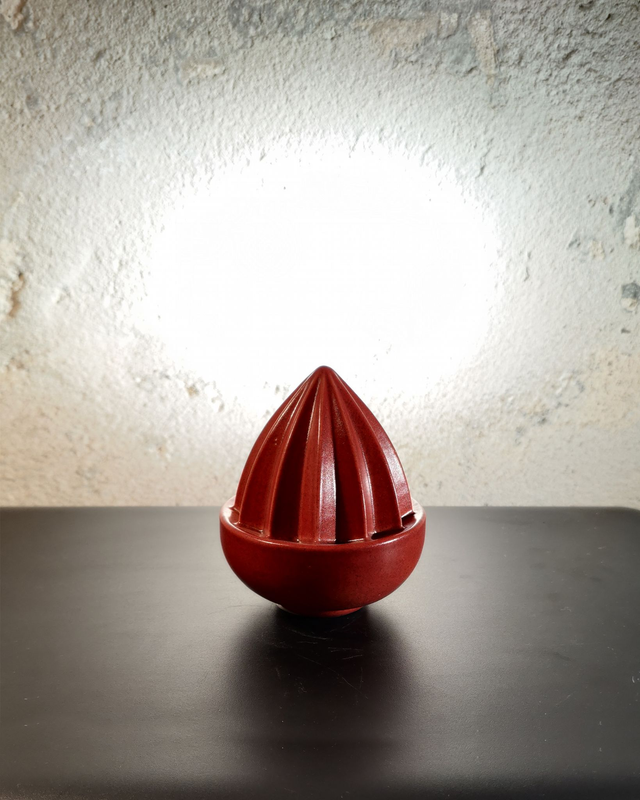"Spremi il Pumetto" è uno spremi agrumi che richiama il tipico porta fortuna grottagliese, ovvero il Pumo o Pomo, qui proposto senza il gambo per una presa ad una mano un pò più primitiva