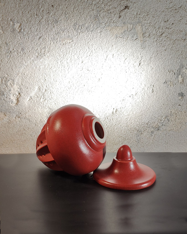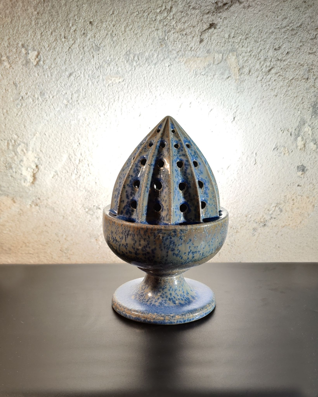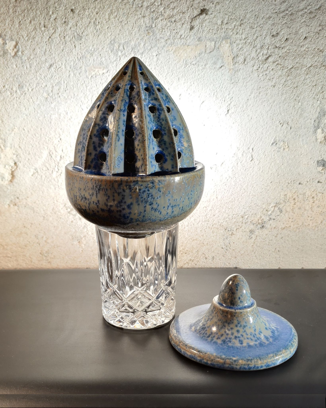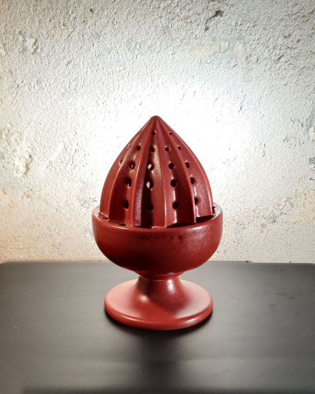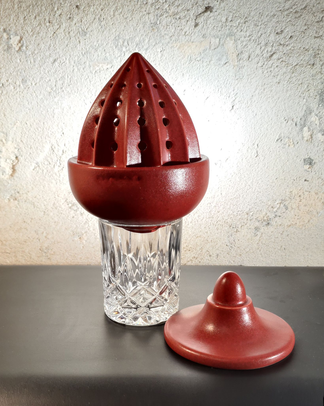 "Spremi il Pumo" è uno spremi agrumi a due pezzi che richiama il tipico porta fortuna grottagliese, ovvero il Pumo o Pomo